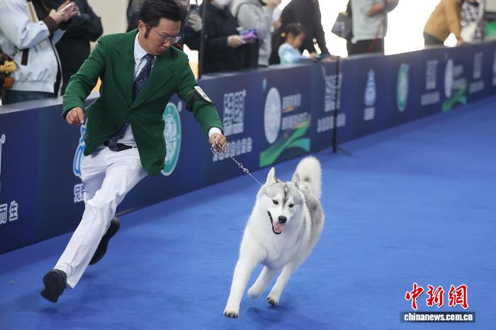 3月27日,江苏北京,狗正在主子的领导停参与角逐。中新社记者 泱波 摄