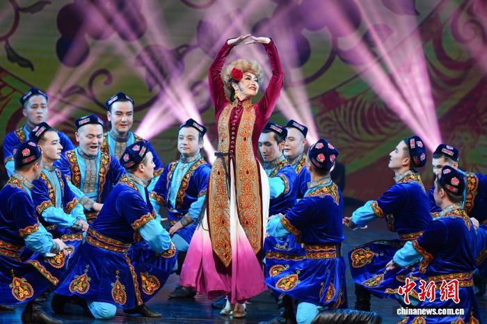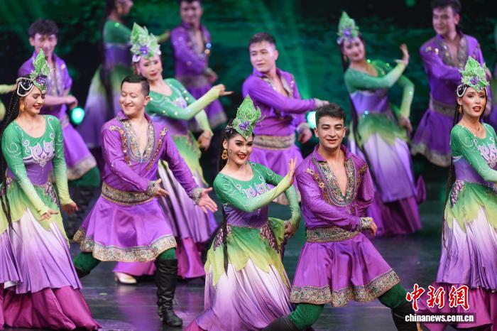 图为年夜型音舞诗《吐鲁番的葡萄会唱歌》表演现场。中新社记者 何蓬磊 摄