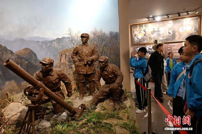 念馆,观光《血色祸修——新期间 新祸修》铺览。中新社记者 吕亮 摄