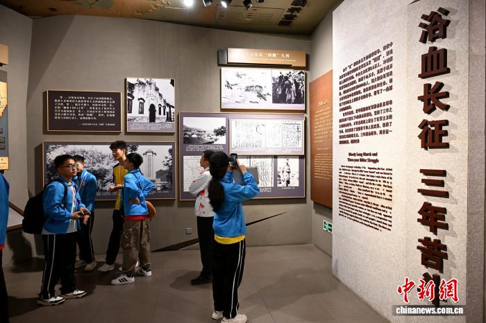 今日喷鼻港师死及侨界青年正在位于祸州的祸修省革新汗青留念馆,观光《赤色祸修——新期间 新祸修》铺览。中新社记者 吕亮 摄